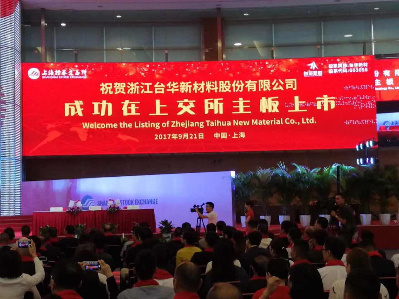 熱烈祝賀公司客戶浙江臺華新材料股份有限公司于2017年9月21日在上海證券交易所主板上市,股票簡稱:臺華新材,股票代碼:603055。公司董事長劉迪女士受邀參加了上市儀式。